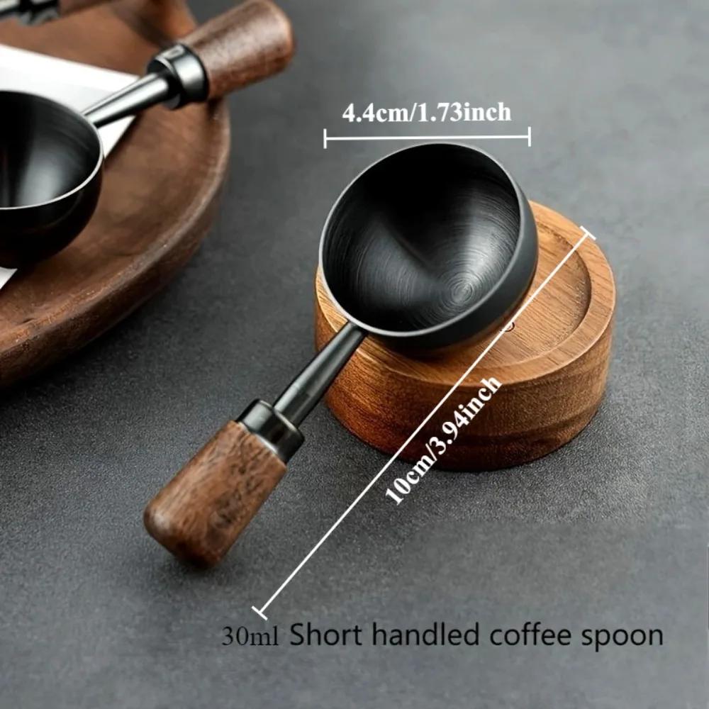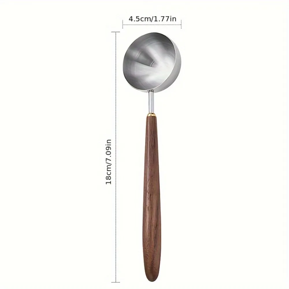 30 مللي الجوز الخشب مغرفة القهوة الفولاذ المقاوم للصدأ مقبض طويل قياس ملعقة للقهوة ملعقة كبيرة المطبخ أداة مقهى اكسسوارات
